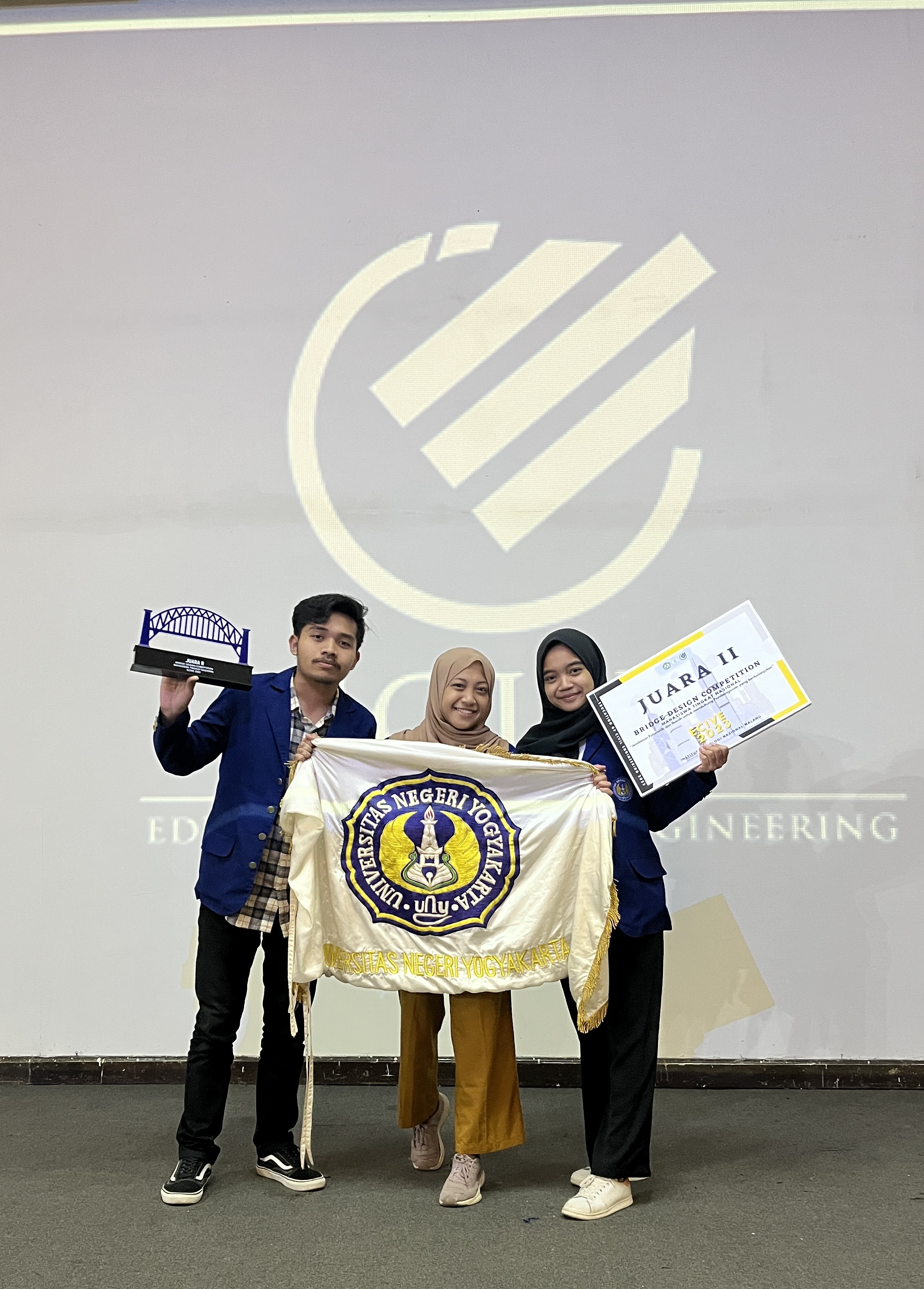 Yogyakarta - Jurusan Pendidikan Teknik Sipil dan Perencanaan Universitas Negeri Yogyakarta kembali meraih prestasi di tingkat nasional. Hal ini dibuktikan oleh perolehan juara di bidang perancangan struktur jembatan dengan bentang 80 meter.