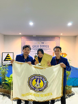 Universitas Pembangunan Jaya, 11-13 November 2022, Bimasena Adhinata dari Universitas Negeri Yogyakarta beranggotakan dua orang tim inti, yaitu Faiz Eka Syahputro dan Agus Bukhori Susilo dengan dosen pembimbing Maris Setyo Nugroho, S.Pd., M. Eng dan dibantu 12 orang tim teknis.