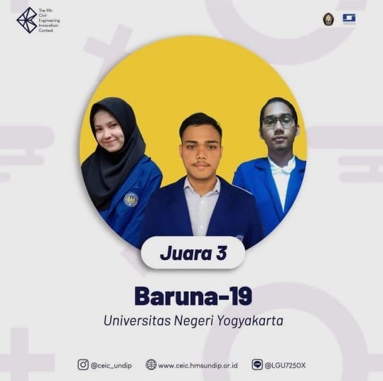 This annual activity is a series of events from Civil Explosion # 8 held by the Civil Engineering and Planning Student Association, Faculty of Engineering, Universitas Negeri Yogyakarta. On this occasion, the Student Association organized a National Seminar with the theme "Development of Sustainable Construction Policy in the Digital Era in Indonesia".